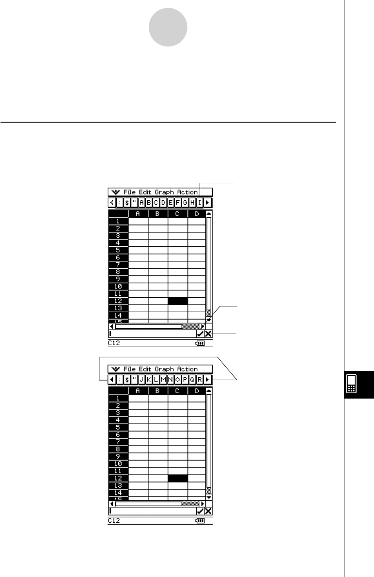 Entering the edit mode (see page 13-4-2) displays the editing cursor in the edit box and the
