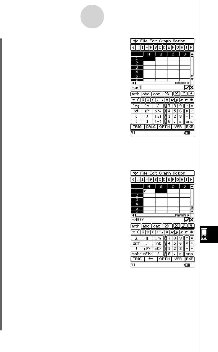 (9) Tap cell A1, press ,, x, ,, 1, and then press ).