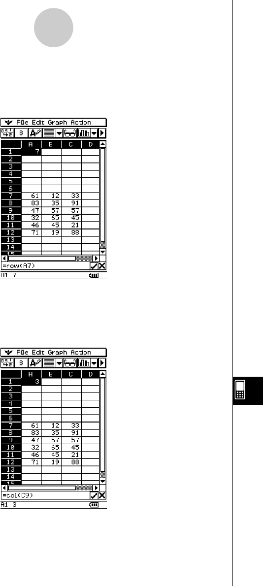 Example: To determine the row number of cell A7 and input the result in cell A1: