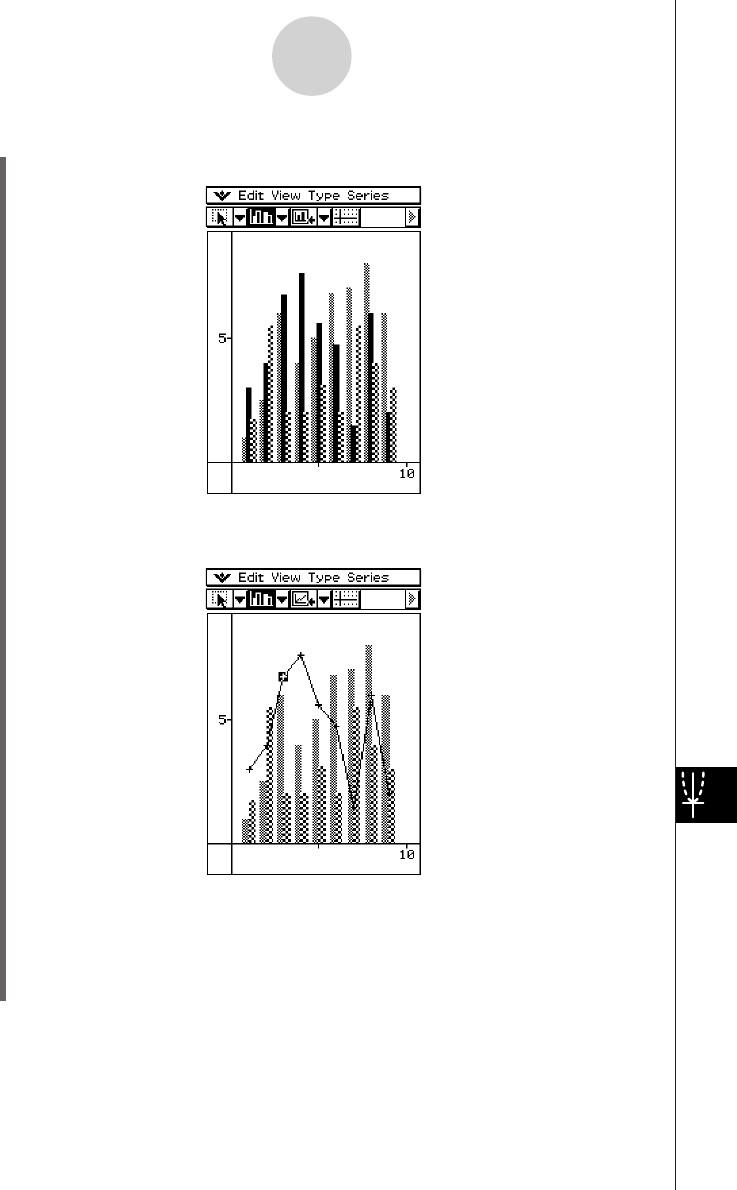 (2) With the stylus, tap any one of the columns you wish to change to a line graph.