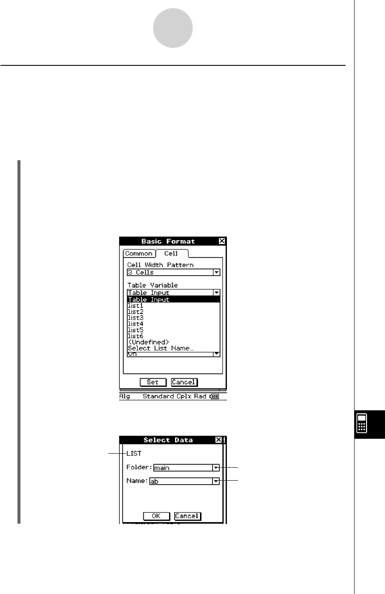 Example: To use [Table Variable] on the [Cell] tab of the Basic Format dialog box for