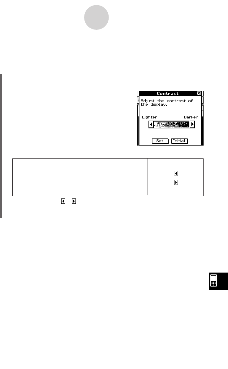 Use the following procedure to display the Contrast dialog box and adjust display contrast.