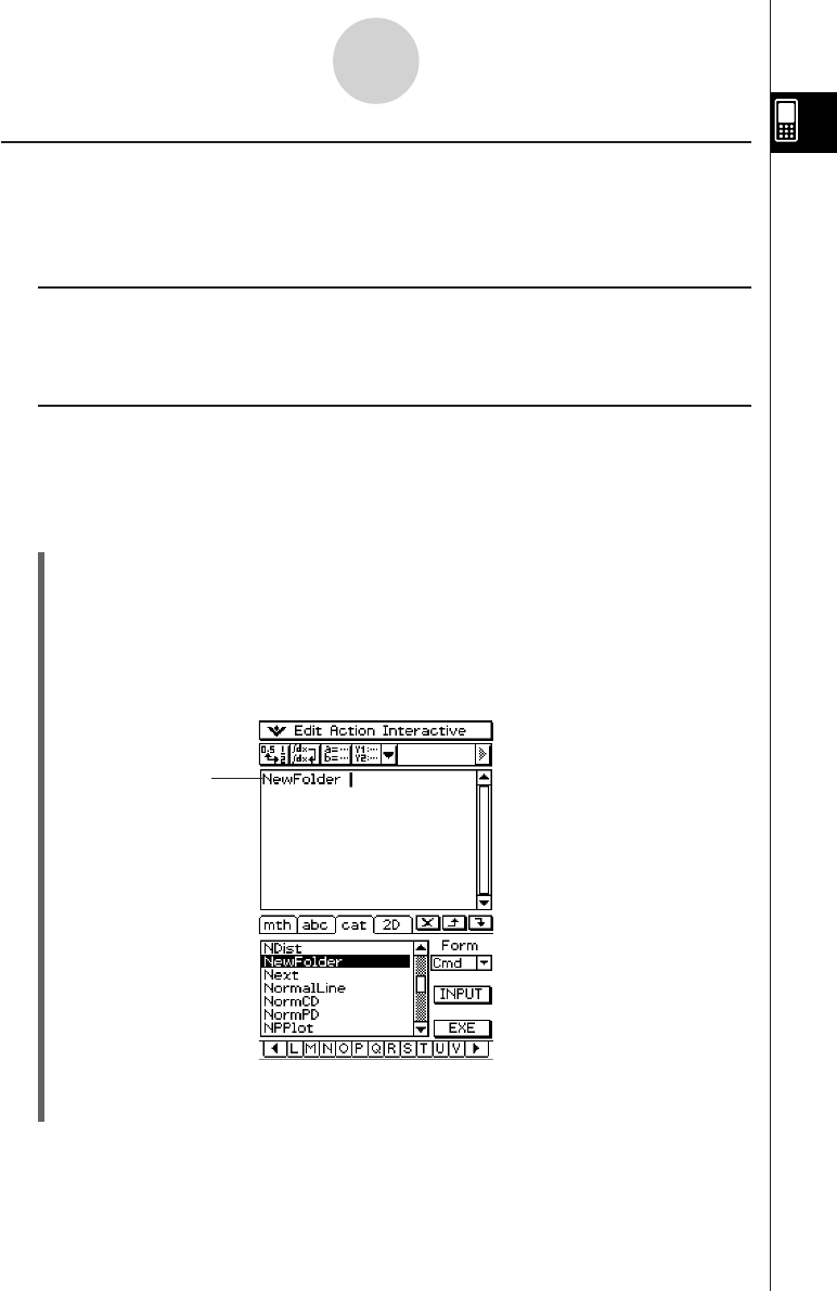 (2) Display the catalog (cat) keyboard, and then input the “NewFolder” command.