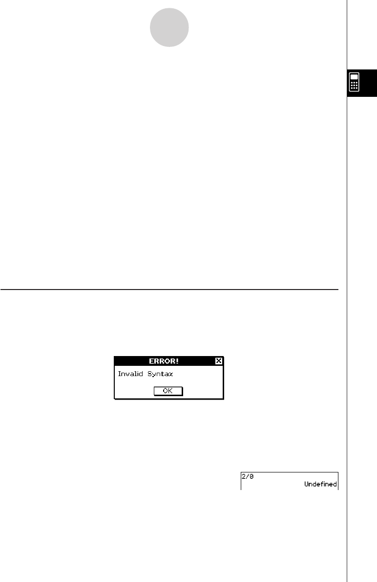 calculation result in the Standard mode (page 2-2-5) exceeds a specified range, etc. Tap