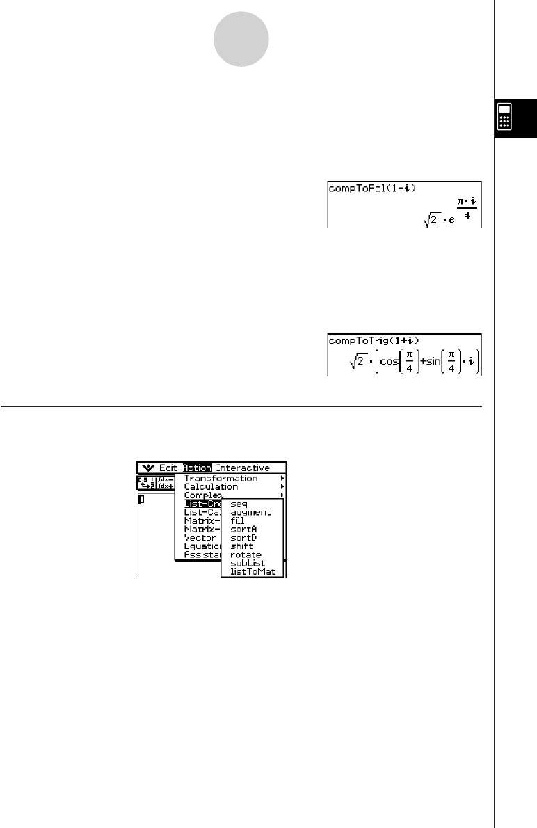 Example: To transform 1 + i into its trigonometric form (in the Radian mode)