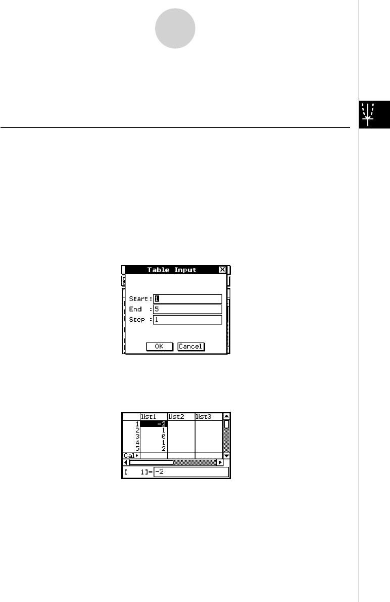 Table Input dialog box to specify a range of values for variable x, and then generate a