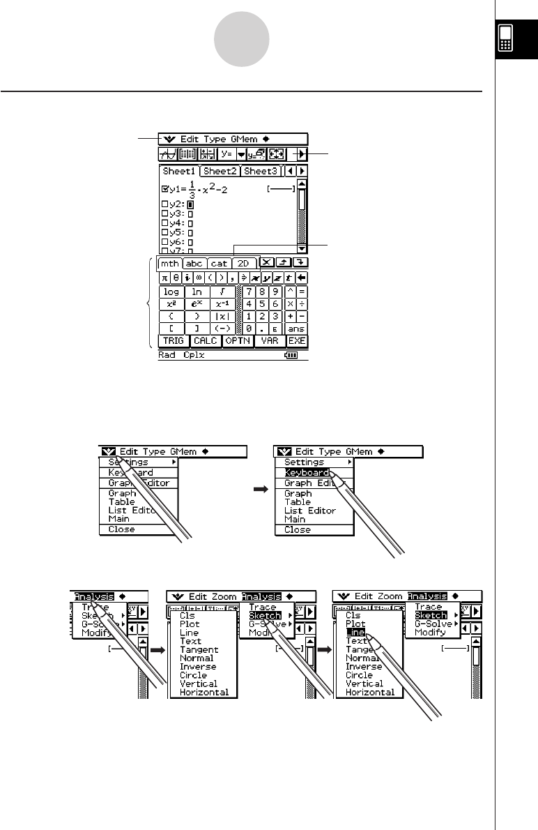 Example 2: Tap [Analysis], [Sketch], and then [Line].