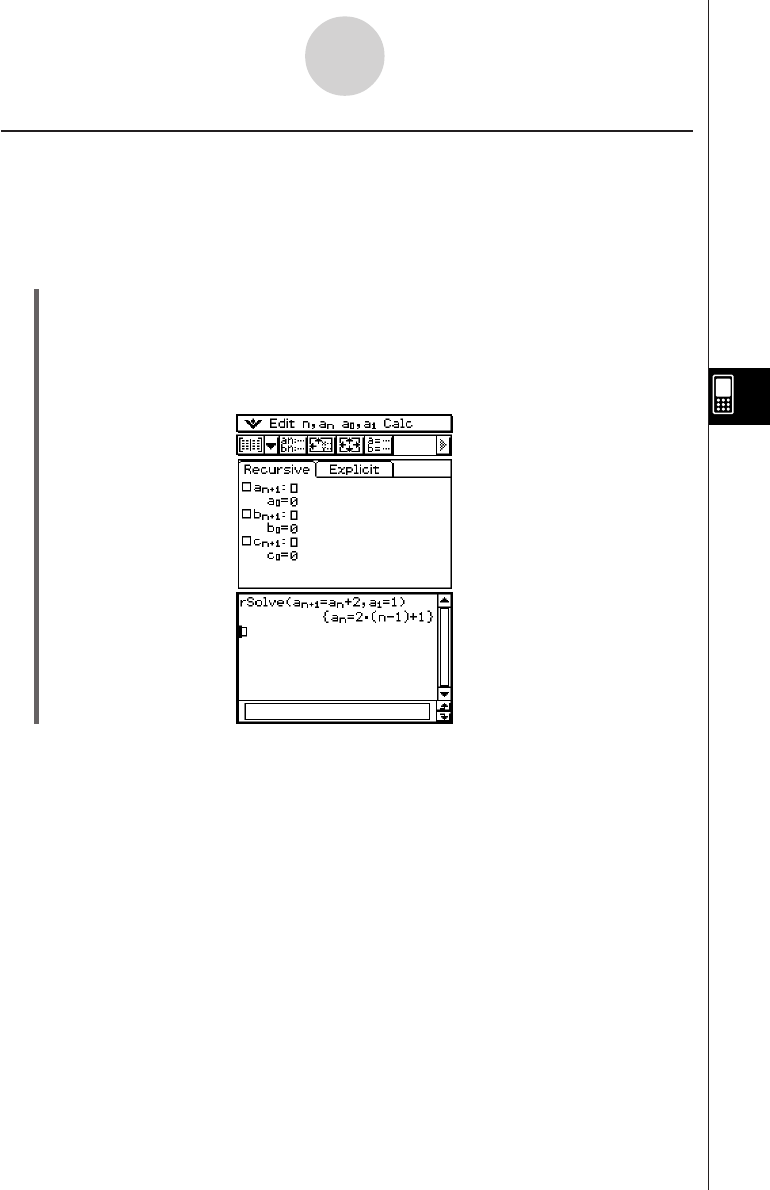 (2) Tap (or press) O, [Sequence RUN], [Calc], [rSolve], [n,an], [an+1], =, [n,an], [an], +,