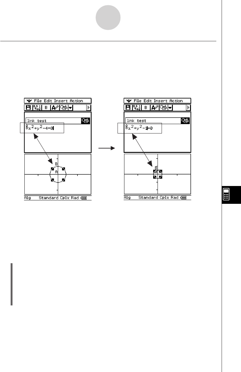 Modifying the equation in a Geometry Link updates the figure in the Geometry window.