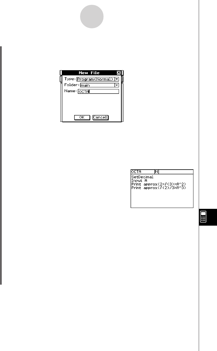• In the [Name] box, use the soft keyboard to input up to eight bytes for the program file