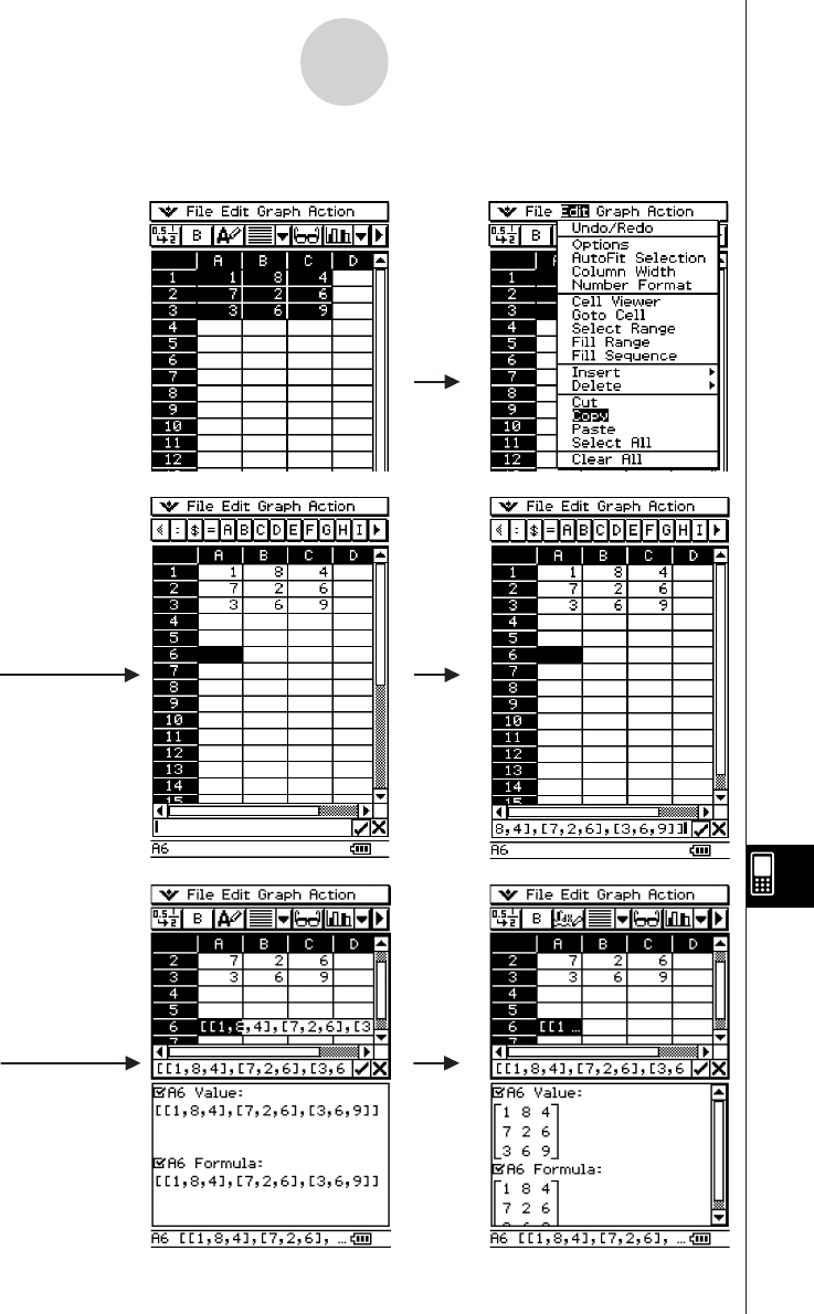 • The following shows how cell data is converted to a matrix format when pasted into the edit