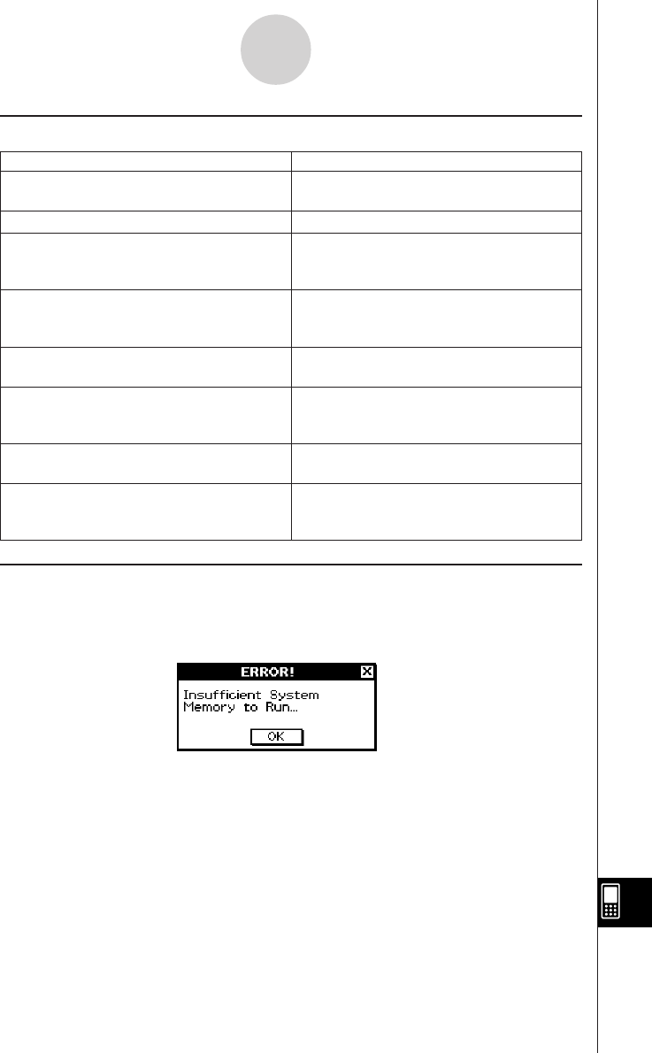 An error occurs on the ClassPad if it is unable to reserve enough work area memory to