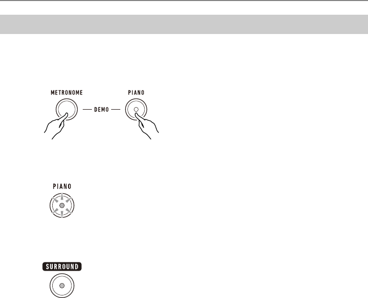 Мигает кнопка «PIANO», начинается воспроизведение композиций для демонстрации