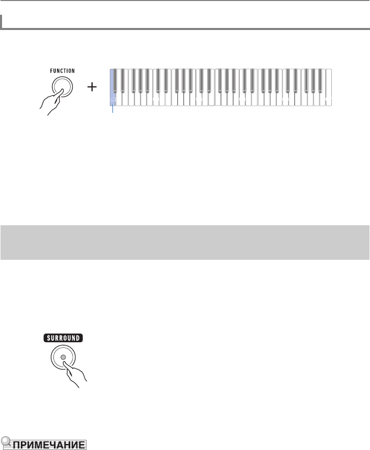 • Во время применения эффекта объемного звука кнопка «SURROUND» горит.