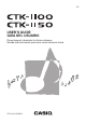 Specifications Model: CTK-1100/CTK-1150 Keyboard: 61 standard-size keys, 5 octaves Tones: 100 Polyphony: 12 notes maximum (6 for certain tones) Auto Accompaniment Rhythm Patterns: Tempo: Chords: Rhythm Controller: Accomp Volume: 100 Variable (236 steps, = 20 to 255) 2 fingering methods (CASIO CHORD, FINGERED) START/STOP, SYNCHRO/FILL-IN 0 to 9 (10 steps) Song Bank Tunes: Controllers: 100 PLAY/PAUSE, STOP, REW, FF, LEFT ON/OFF (ACCOMP), RIGHT ON/OFF (MELODY) Other Functions Transpose: Tuning: 12