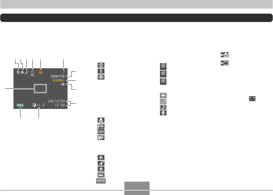 The monitor screen uses various indicators and icons to keep you informed of the camera’s status.