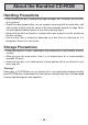 About the Bundled CD-ROM Handling Precautions • When handling the disc, avoid getting finger smudges, dirt, scratches, etc. on either of its surfaces. • Should the disc become dirty, use an eyeglass cleaning cloth or some other soft cloth to wipe it lightly from the center of the disc outwards towards its edge. Never use phonograph record cleaner or any other cleaning agent. • Never write on either of the disc’s surfaces with a pen or pencil, or affix a sticker to the disc surfaces.