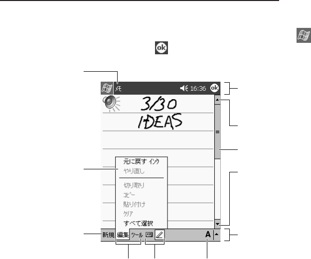 • コマンドバーの右端部分には、文字の入力時に利用する「入力パネルボタン」が