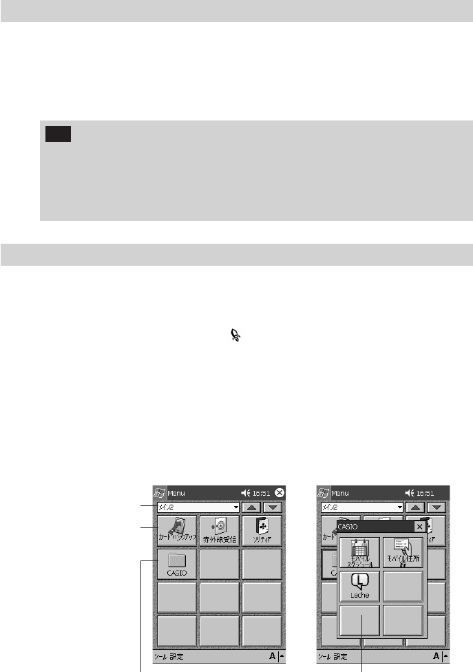 「Menu」を使うと、画面上のボタンをタップして各種のプログラムを起動したり、