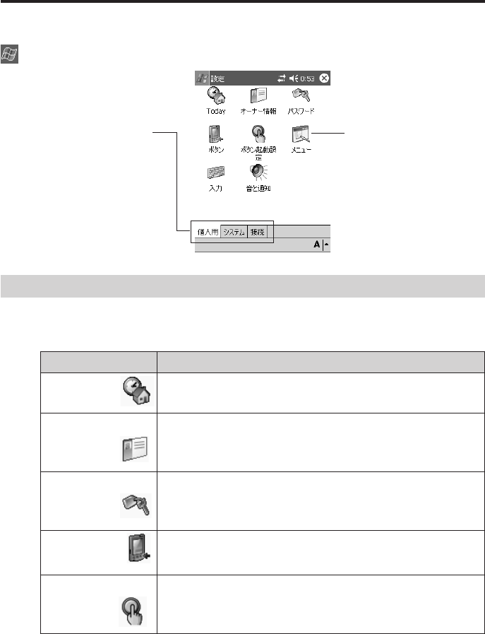 [個人用]タブ内には、本機を自分の使い勝手に合わせてカスタマイズするための設