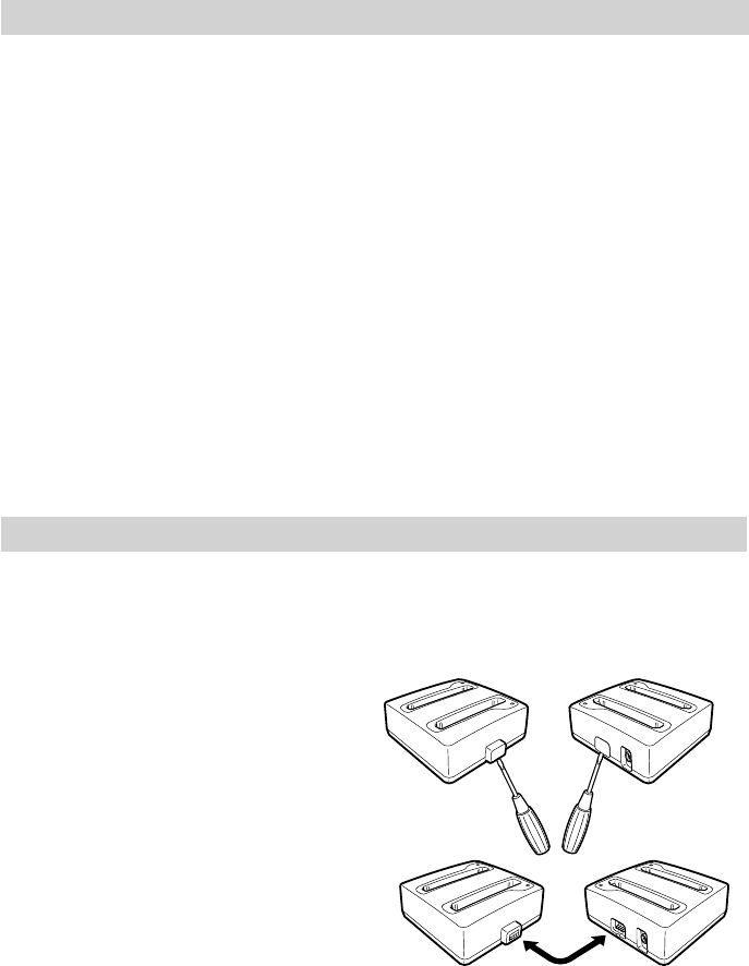 充電器は最大 3 台までの連結ができ、同時に6 個の充電池を取り付けて充電できま