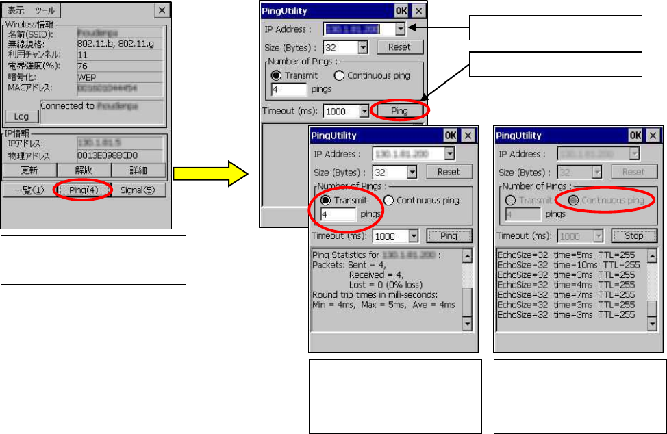 ネットサーチの詳細画面で,【Ping(4)】ボタンを選択する事で、PingUtility が起動します。