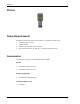 Introduction Picture Setup Requirements Installation of PowerNet Twin Client requires, at a minimum, the following: • A Pentium-class processor • 32 MB of RAM • 10 MB of free hard disk space available • Microsoft Windows 95, 98, ME, XP, or NT/2000 operating system Accessories The following accessories are available for the DT-800RF: I/O Box • DT-860IOE (satellite I/O box) • DT-865IOE (master I/O box) Charger (Single-Pack) • DT-820CHGE (Quick charger) Lithium Ion Battery Pack • 1-2 DT-82