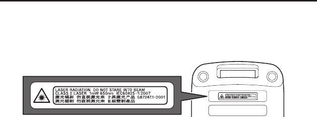 雖然 2 類激光僅為瞬間發光Lj但切勿直視激光束ă
