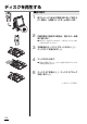 ディスクを再生する ■基本操作 1 端子カバーのつまみを「解除」側に回して端子カ バーを開け、主電源スイッチを 側にします。 2 内蔵充電池で使用する場合は、端子カバーを確 実に閉じます。 ● 端子カバーを押さえつけながら、つまみを「ロック」側に 止まるまで回してください。 2 3 本体裏面のディスクドアロックを外し( 1 )、 ディスクドアを開きます(2)。 4 ディスクを入れます。 5 ディスクドアを閉め(1)、ディスクドアロック を閉じます(2)。 1 1 ● 再生する面を下にして、カチッと音がするまでディスクの 中央付近を押さえます。 2 → 次のページに続く 28