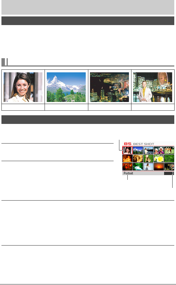BEST SHOT provides you with a collection of sample “scenes” that show a variety of