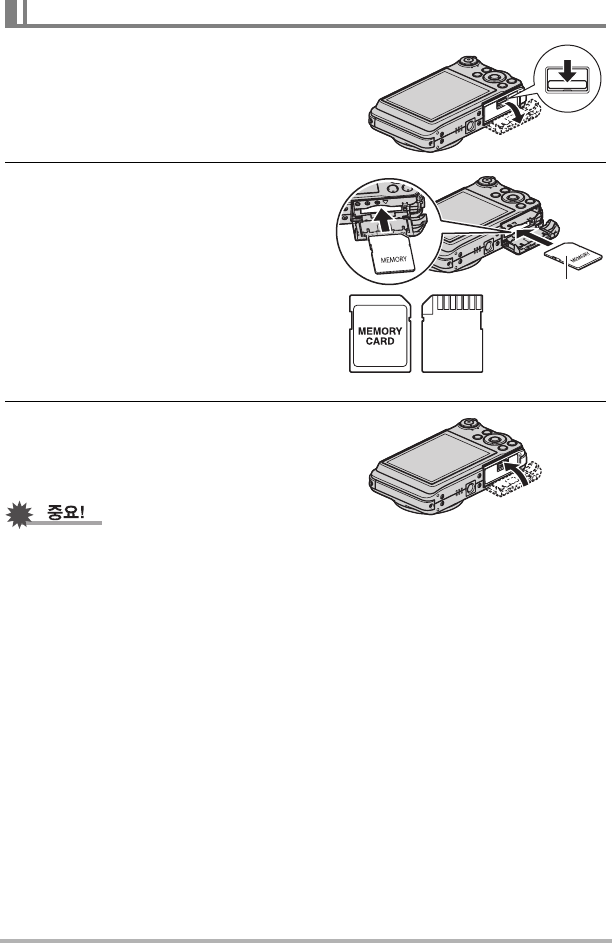• 카드 슬롯에 물이나 그 밖의 이물질이 들어갔을 때에는 즉시 카메라 전원을 끄고 전지를