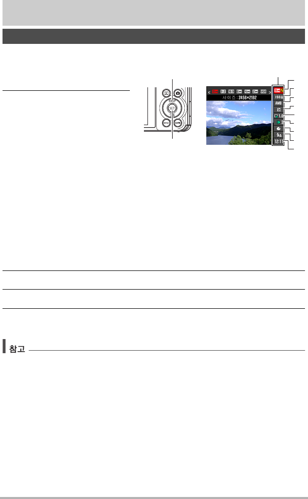 컨트롤 패널을 사용해 카메라 설정을 구성할 수 있습니다.