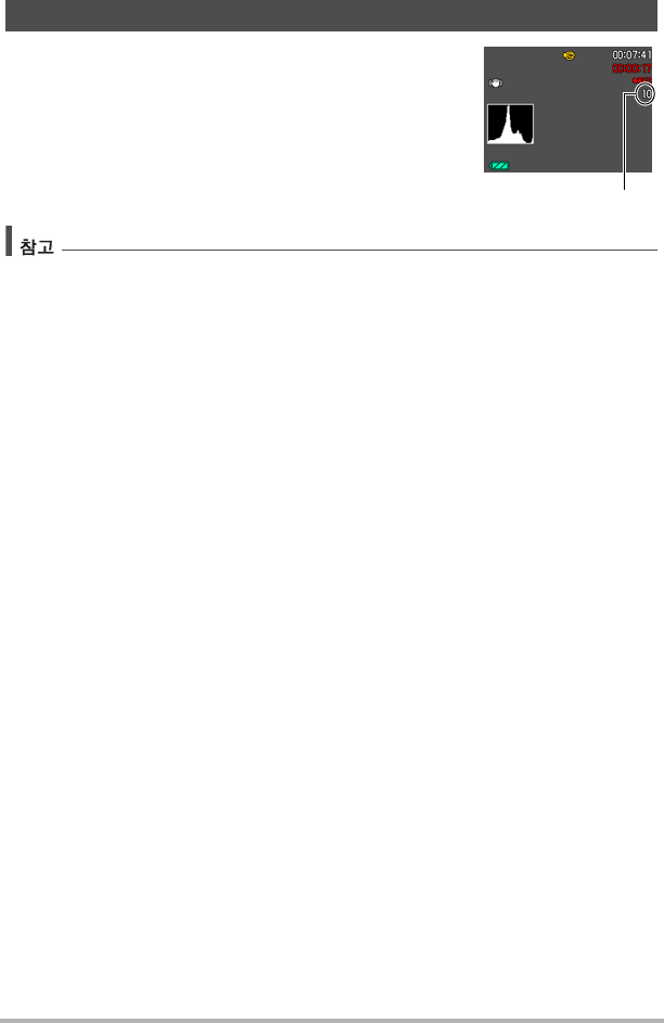 • 동영상당 최대 10매의 스냅사진을 촬영할 수 있습니다. 스냅사진 매수는 또한 메모리 카