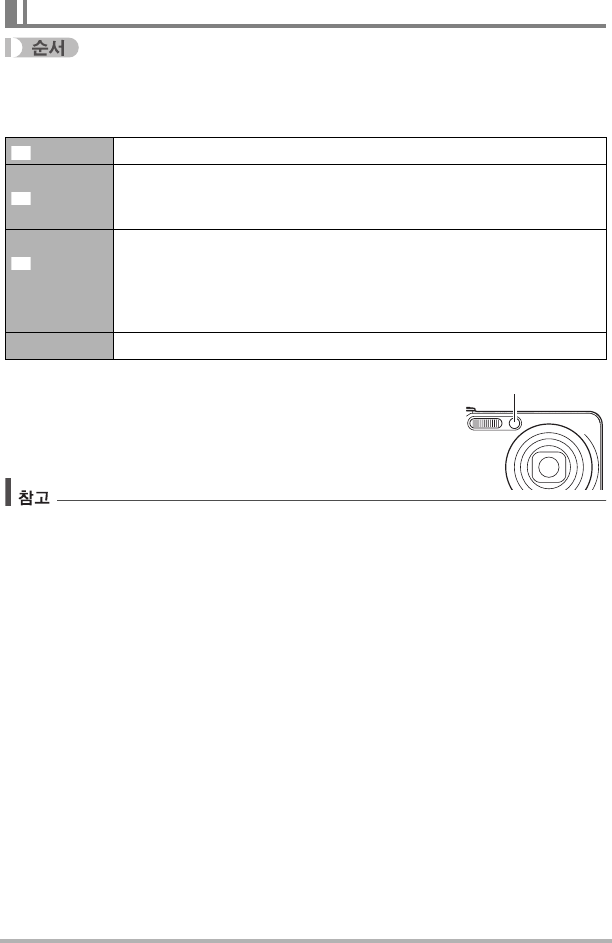 • 셀프 타이머의 카운트다운이 진행되는 중에는 전면 램프가 깜박