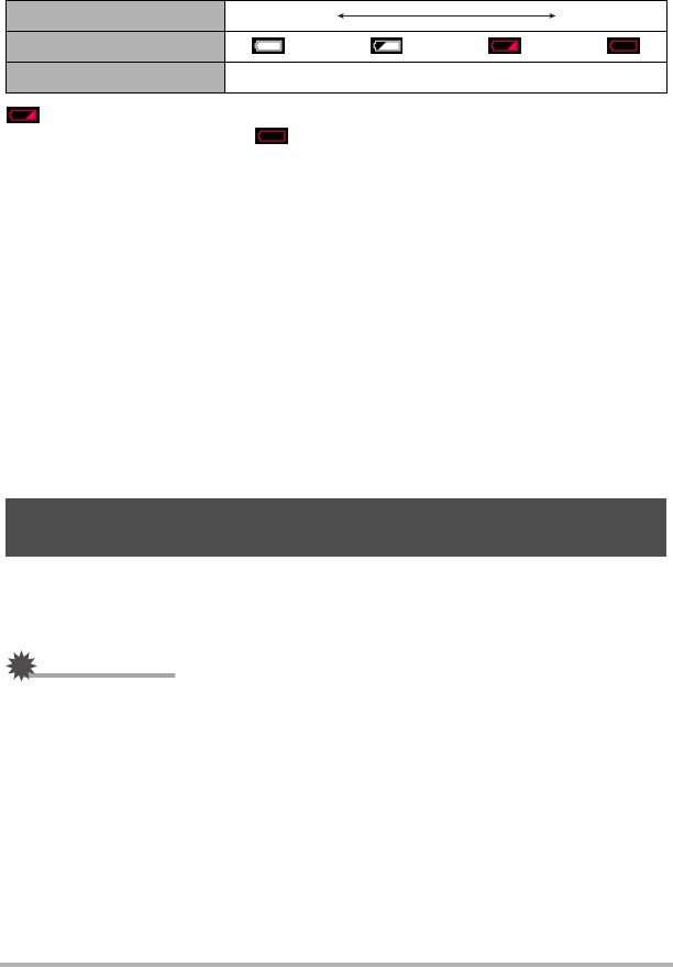 indicates battery power is low. Charge the battery as soon as possible.