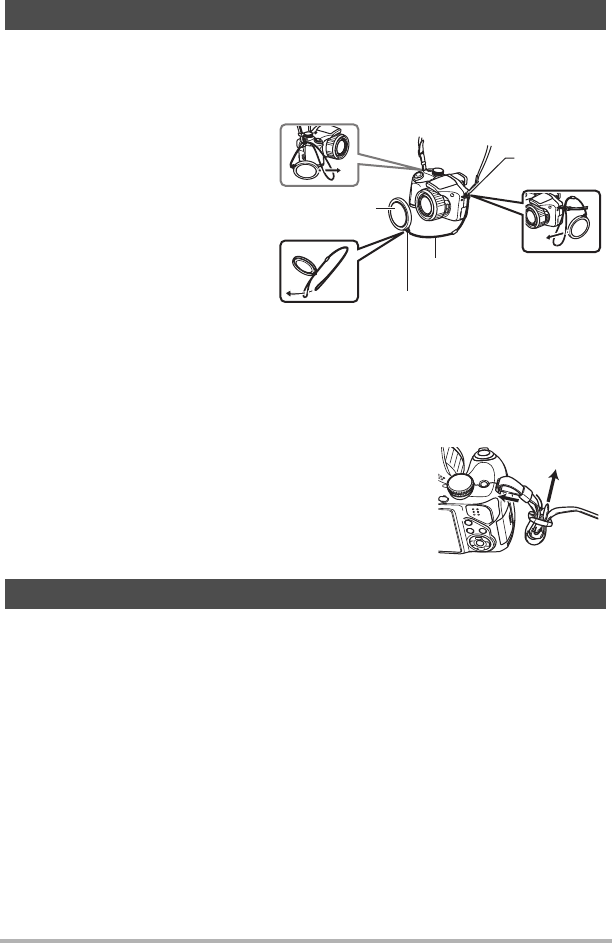 - Anbringen des Objektivdeckels und Riemens