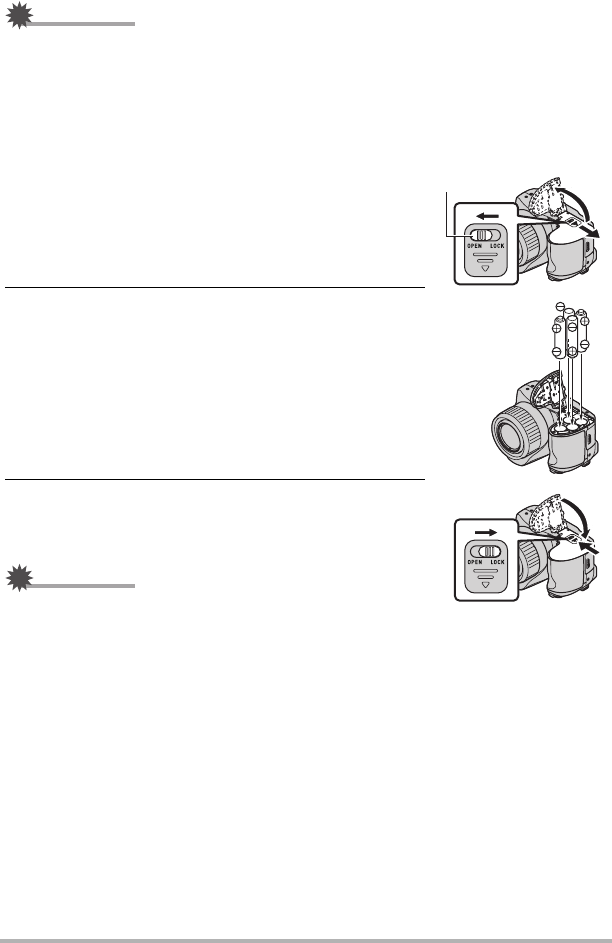 • Bei Verwendung von Alkali-Mignon-Batterien (LR6) ist die Kamera bei