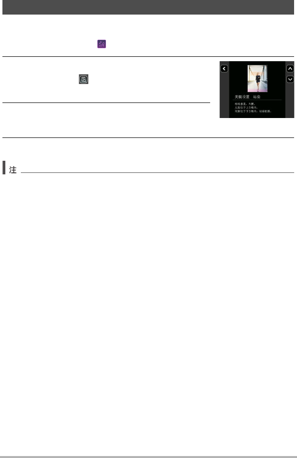 • 屏幕上有修长腿部指示时,变焦不可用。选择修长腿部场景时对镜头进行变焦的话,
