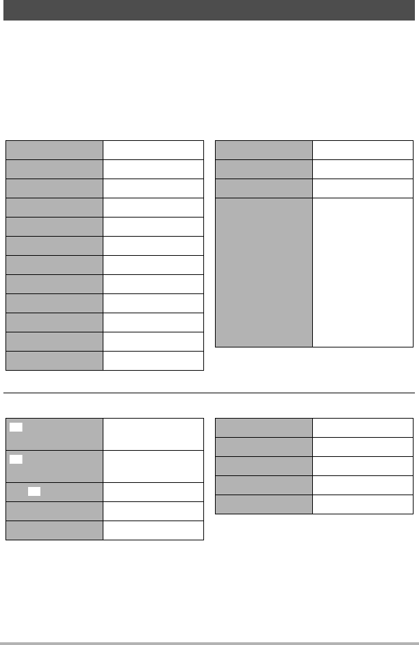 items (displayed when you press [MENU]) after you reset the camera (page 152).