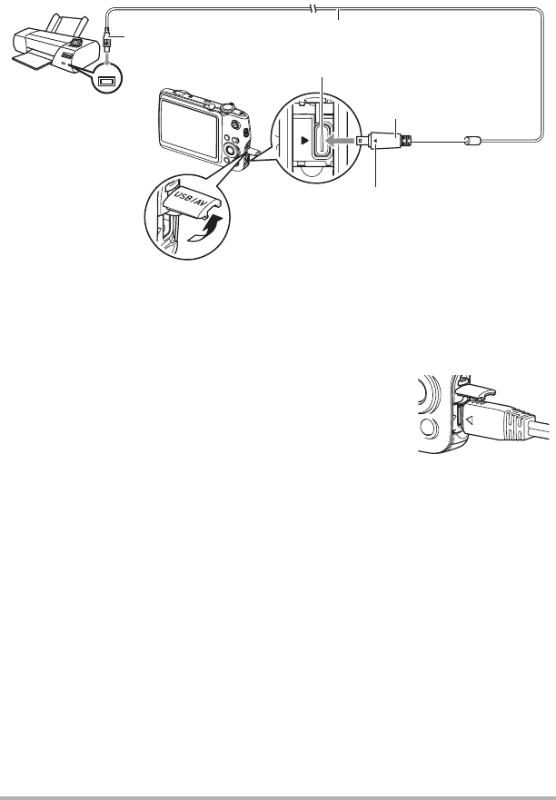 • Вставьте соединитель кабеля в порт USB/AV до щелчка, подтверждающего