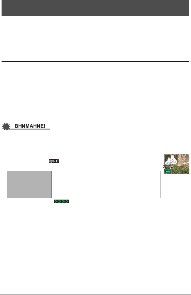 • При загрузке карты Eye-Fi на экране монитора появляется
