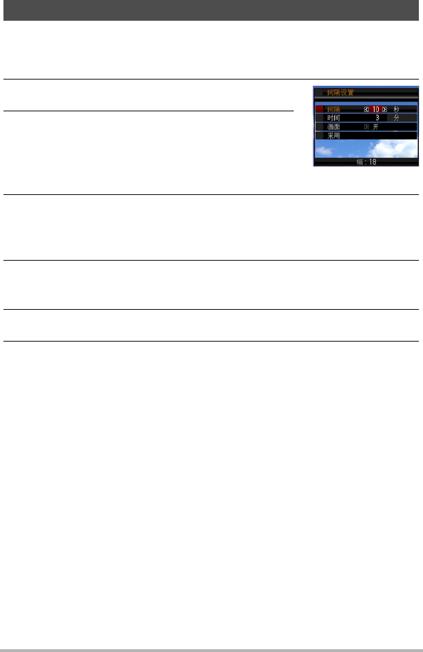 • 此设定可指定拍摄的间隔。您可以指定以下其中一种