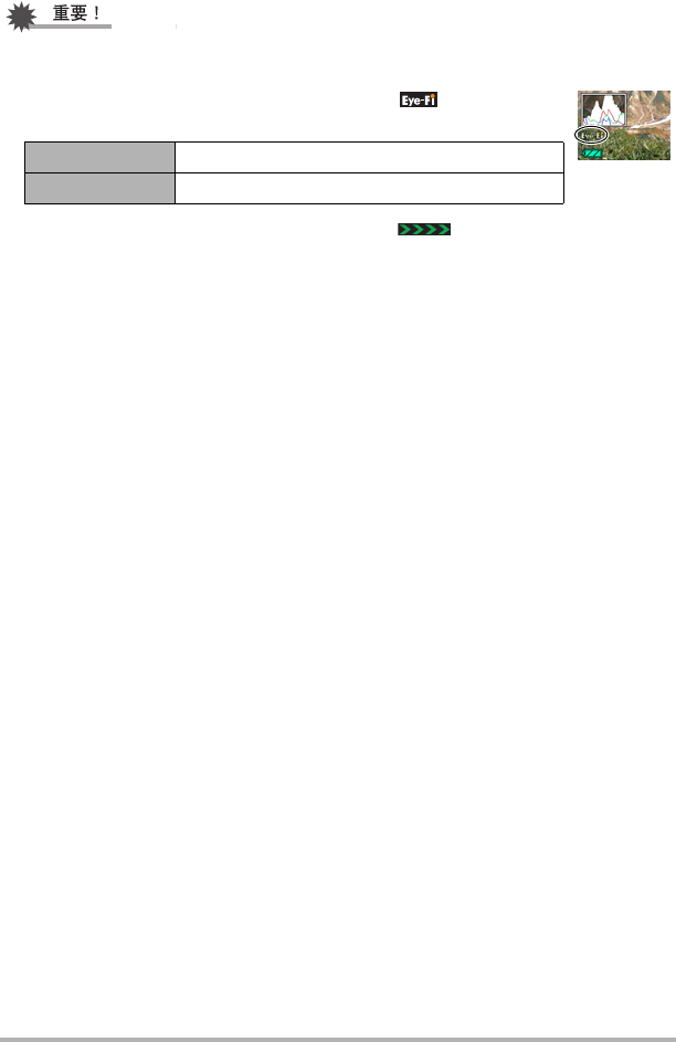 • 装入Eye-Fi卡后,显示屏上即会出现Eye-Fi指示符 。指示符透明