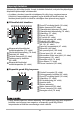 Általános útmutató A zárójelben lévő számok azokat az oldalakat jelölik, amelyeken a fényképezőgép egyes részeivel kapcsolatban részletes ismertetést talál. . Fényképezőgép Elölnézet Hátulnézet 1234567 9 bk bl bm bn bo bp [ ] ck bt bs br bq 8 1 Üzemmód tárcsa (23., 31., 60. oldal) 2 Zoom vezérlő (24., 48., 90., 91. oldal) 3 Exponáló gomb (23. oldal) 4 Villanófény (37. oldal) 5 [ON/OFF] (BE/KI, áram) (21. oldal) 6 Első lámpa (45., 75. oldal) 7 [ECO] gomb (17. oldal) 8 Optika 9 Mikrofon (56., 106.