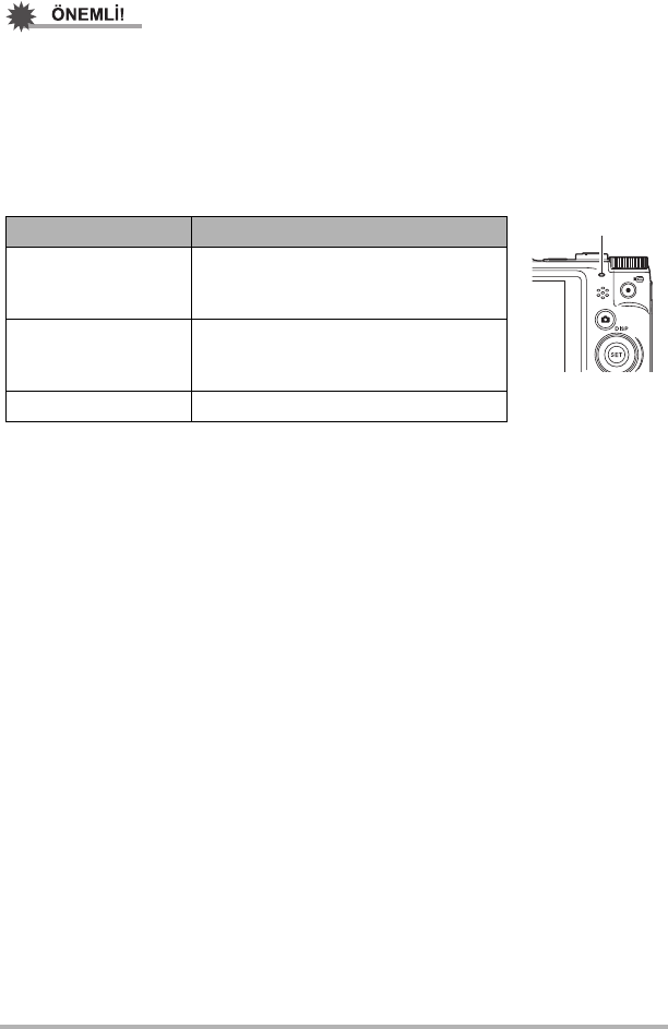 • Yukarıdaki tablodaki parantez içindeki bilgiler fotoğraf makinesi şarj sırasında