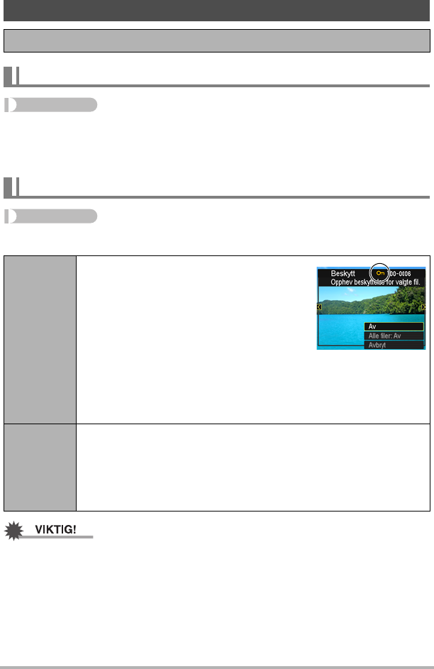 • Vær oppmerksom på at selv om en fil er beskyttet, så vil den bli slettet dersom du