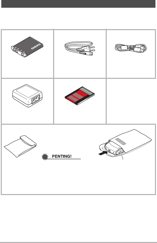 Semasa anda membuka bungkusan kamera anda, periksa untuk memastikan semua