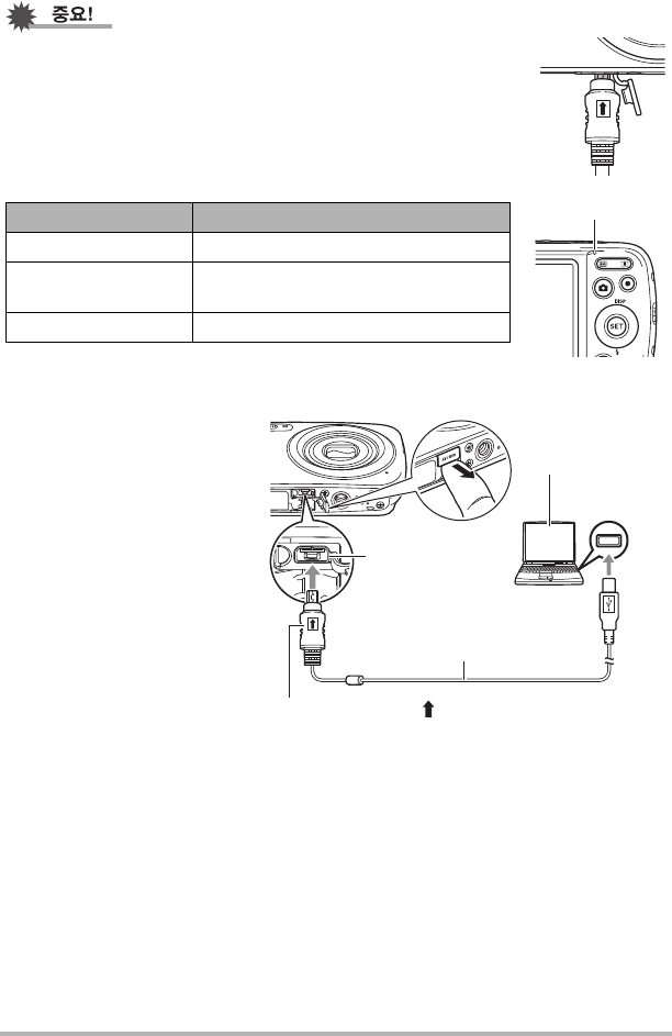 USB 케이블 커넥터의 마크가 렌즈쪽 방향인지 확인한