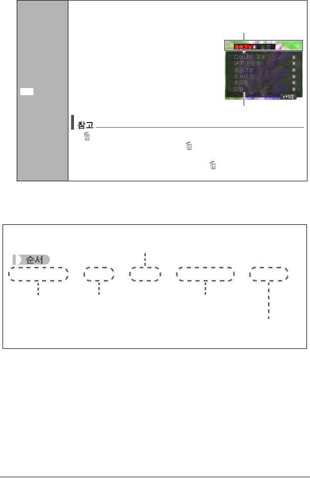 이 설명서에서는 촬영 재생 메뉴 조작을 아래와 같이 표현하고 있습니다. 아래의 조작은