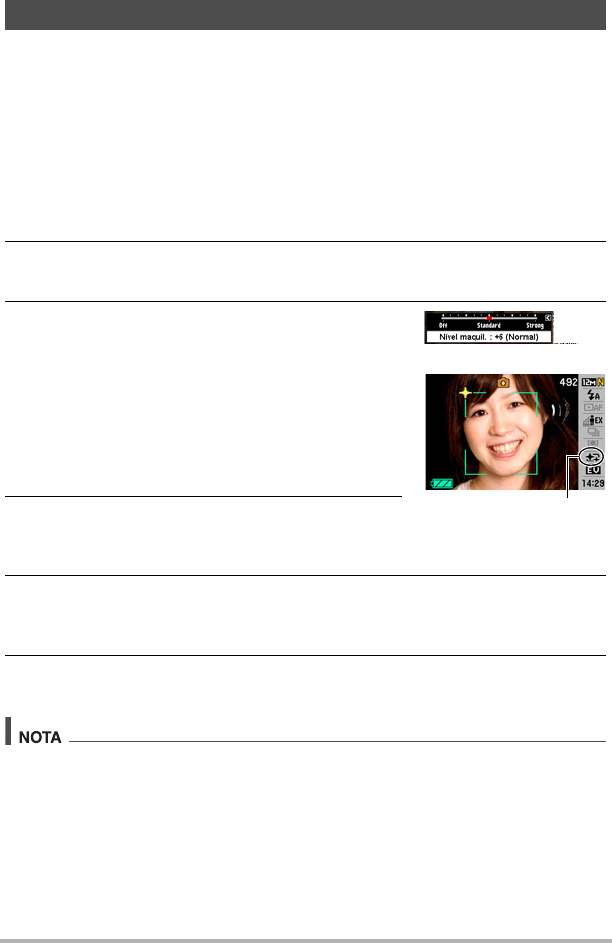 • O ícone do modo de maquilagem ± será exibido no monitor enquanto o